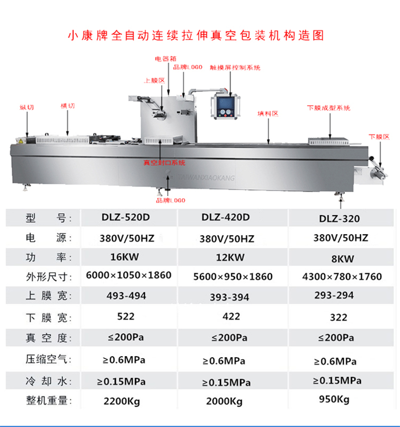 小康牌全自動(dòng)連續(xù)拉伸真空包裝機(jī)結(jié)構(gòu)示意圖